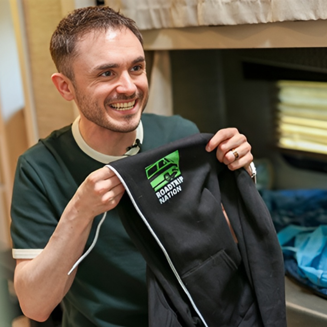 In Spring 2025, with bags and books packed, Lorenz boarded Roadtrip Nation’s bright green RV with two other nursing students for a 300-mile road trip across the Sunshine State.